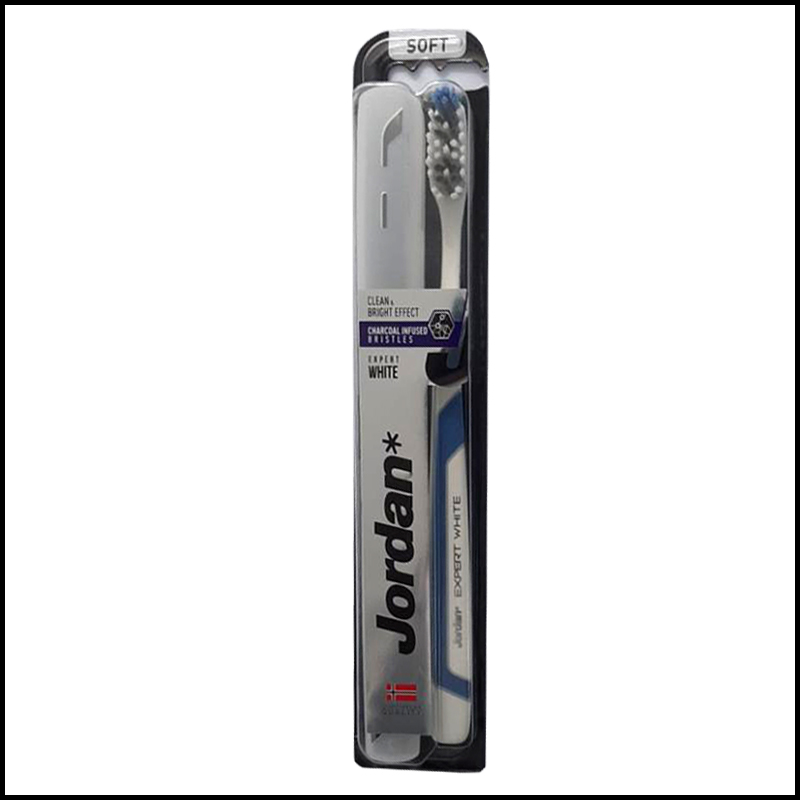 Jordan Toothbrush Expert White Soft (Charcoal Infused) with Hygenic Travel Case